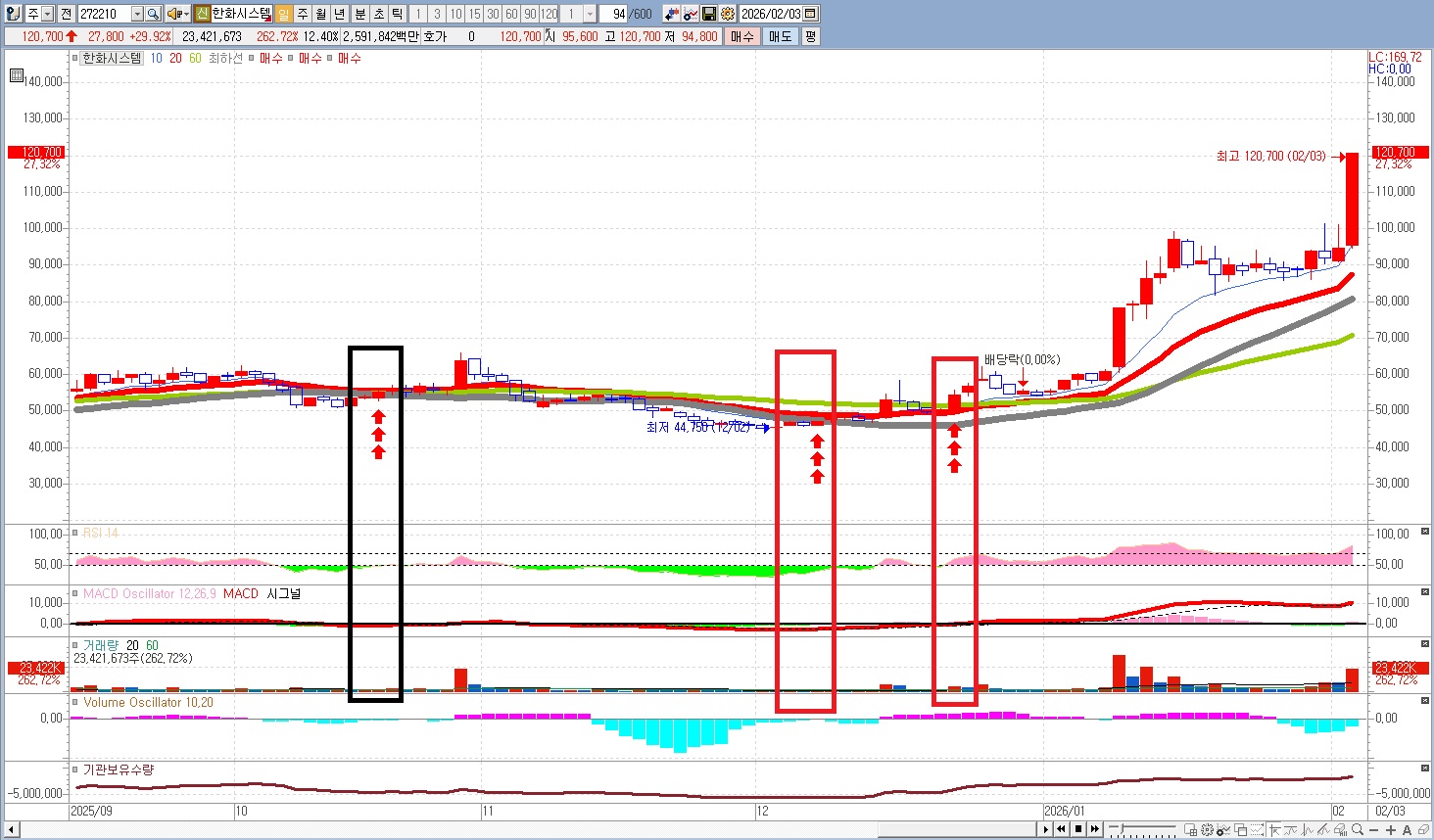 3. 매수 화살표 적용 실제 챠트화면