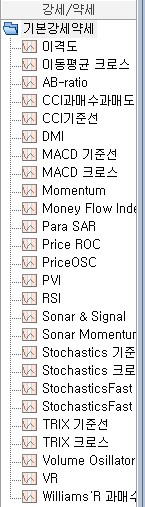 - 영웅문에서 기본적으로 설정되어 있는 강세/약세가 리스트되어 보여진다